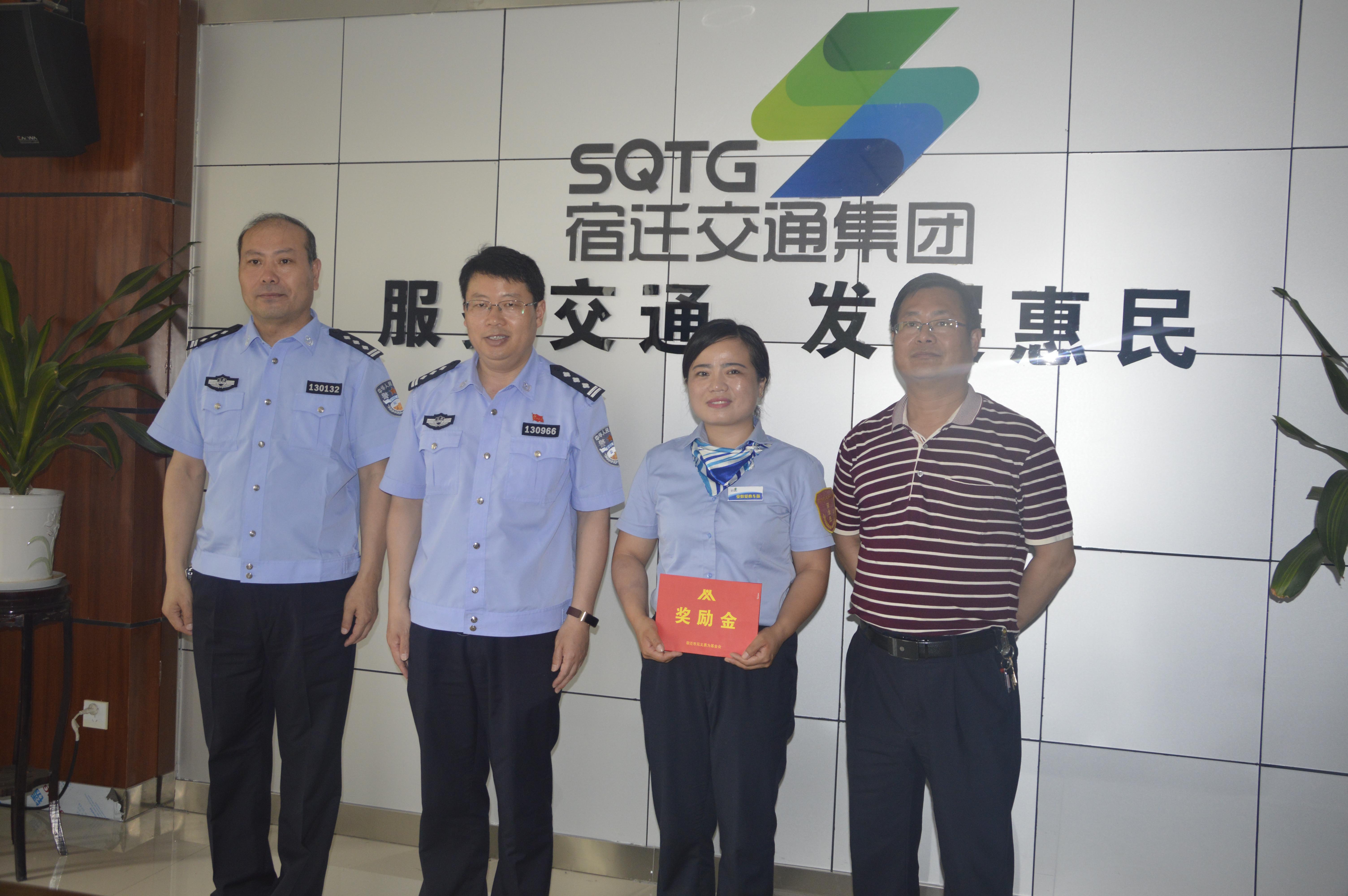 5月17日上午,宿遷市公安局趙居倫副局長一行三人來到市公交公司慰問102路駕駛員朱曼如,并代表宿遷市見義勇為基金會送來表彰和嘉獎,以表彰她見義勇為的精神,弘揚社會正能量。