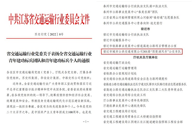 301路“西楚清風號”車隊前身為“退伍軍人示范線”,首批車隊成員為各線路退伍軍人,2022年5月被評為“江蘇省交通運輸行業(yè)青年建功標兵團隊”。凝聚力、正能量、榮譽感、大局觀始終被車隊成員牢牢銘記在心里,實踐于服務(wù)乘客中,把車隊建設(shè)成駕駛員們最有安全感、歸屬感和幸福感的大家庭。