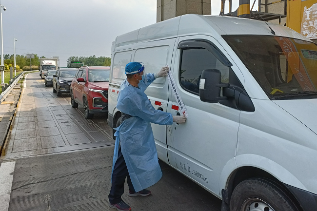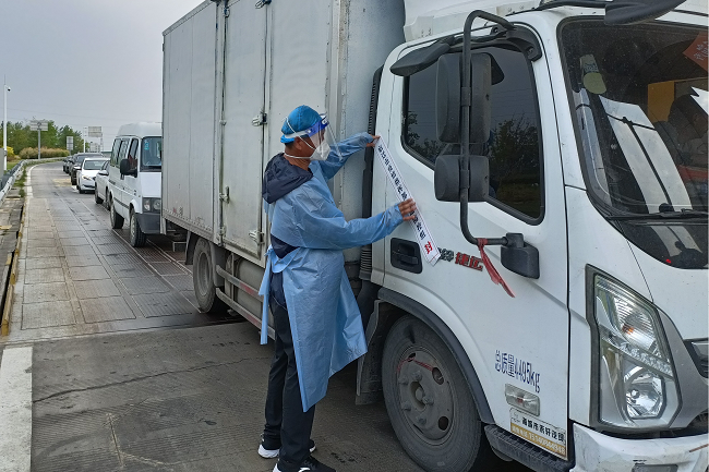 中午12點(diǎn)整,陸彬進(jìn)入指定位置,開始今天的執(zhí)勤工作。疫情防控進(jìn)入常態(tài)化后,執(zhí)勤工作的重心調(diào)整為嚴(yán)密排查貨運(yùn)車輛和高風(fēng)險(xiǎn)地區(qū)來宿車輛。雖然不必再像執(zhí)勤前期那樣逐一檢查過往車輛的健康碼、行車碼和48小時內(nèi)核酸檢測證明,但為織實(shí)織密疫情防控網(wǎng),杜絕漏查、誤查情況發(fā)生,陸彬要在6個小時的執(zhí)勤時間里盯緊收費(fèi)站出入口,嚴(yán)防因車輛監(jiān)查系統(tǒng)失誤讓高風(fēng)險(xiǎn)地區(qū)車輛越過“紅線”進(jìn)入宿遷市。
