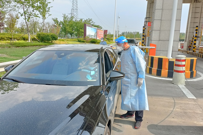 2022年3月22日至4月15日,130余名“宿遷公交人”主動請纓、奮戰(zhàn)一線,成為寧宿徐高速公路宿遷主線收費(fèi)站的首批公交防疫志愿者,他們輪班值守、日夜兼程,堅(jiān)決當(dāng)好宿遷市民生命安全“守門員”,守好宿遷城市“南大門”。葉敬濤是沖在最前面的一批。查看健康碼、檢查通行證,詢問途徑地區(qū)、詳細(xì)篩查登記,平時手握方向盤的他,此時正耐心細(xì)致地對過往車輛人員進(jìn)行摸底式“體檢”,堅(jiān)決不讓一輛問題車駛?cè)胨捱w地區(qū),不讓一名可疑人員突破防疫網(wǎng)。