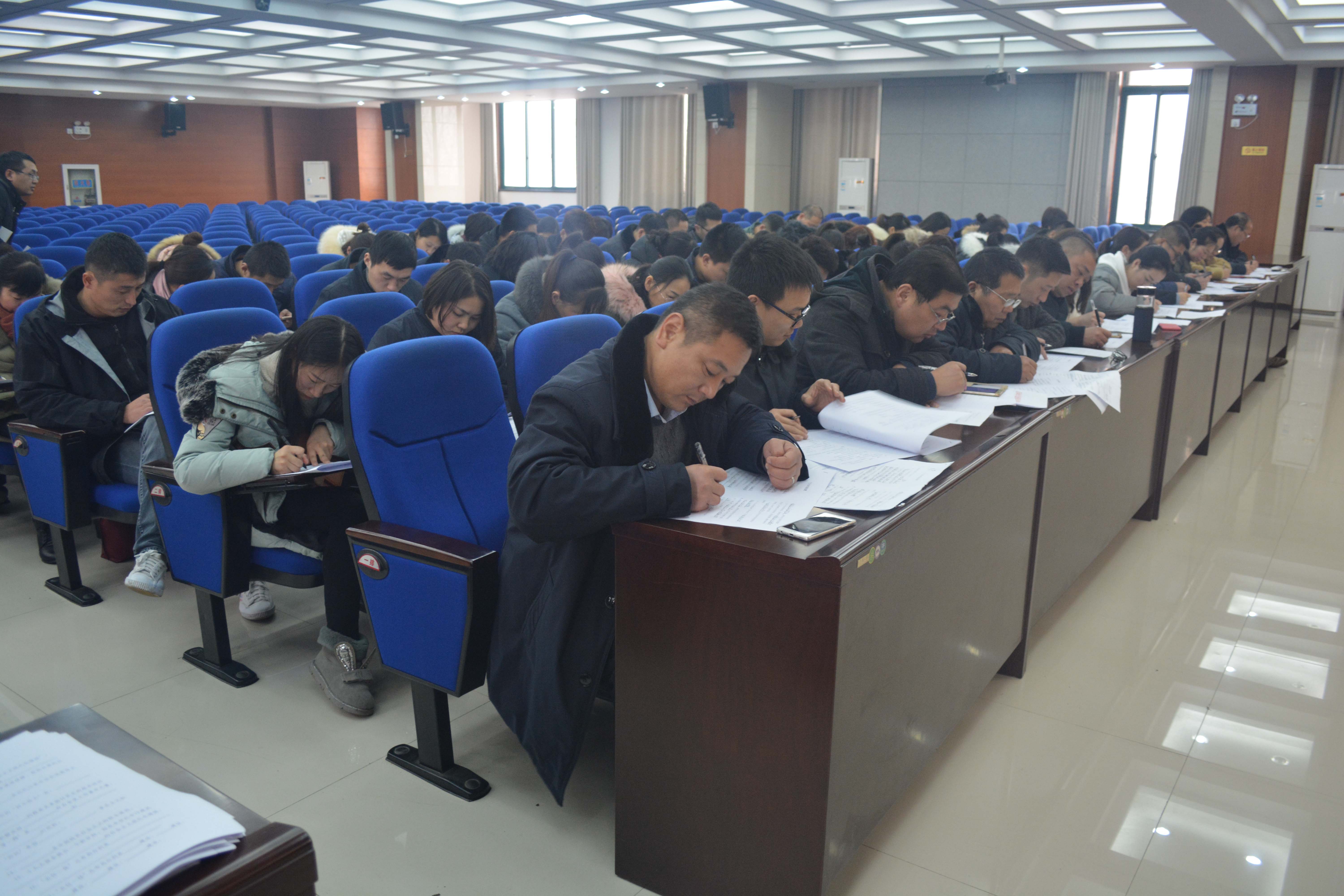 此次知識(shí)測(cè)試采取閉卷的方式進(jìn)行,測(cè)試內(nèi)容包括《中國(guó)共產(chǎn)黨章程》、十九大會(huì)議精神、應(yīng)知應(yīng)會(huì)等方面的內(nèi)容,題型包括填空、選擇、簡(jiǎn)答等多種形式。測(cè)試現(xiàn)場(chǎng),全體干部職工認(rèn)真思考作答,在規(guī)定的60分鐘答題時(shí)間里全部完成答題。