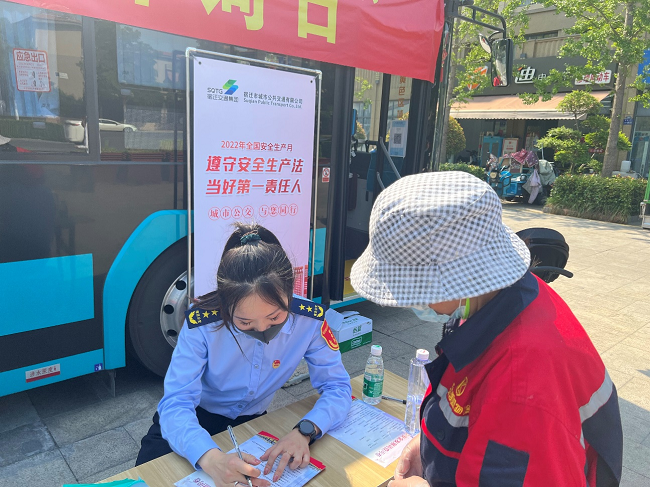 作為“安全生產(chǎn)月”活動的重要內(nèi)容,市公交公司高度重視、嚴密部署,緊扣“遵守安全生產(chǎn)法,當好第一責任人”主題,聚焦公交文明服務、安全出行、消防安全、家庭安全、安全發(fā)展示范城市創(chuàng)建等重點工作,向社區(qū)居民宣傳安全生產(chǎn)政策法規(guī)、普及公交安全知識,著力提高居民安全防范意識和社區(qū)安全管理水平。